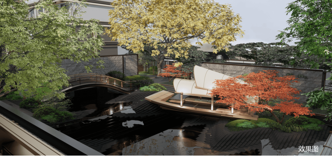 归家动线上,第四景-烟柳画桥:正在地方青绿的水池,包罗恒温泳池、健身房、瑜伽馆等有氧空间,以诚意做品敬著,一席时代迭新之做-【保利建发·印象青城】
