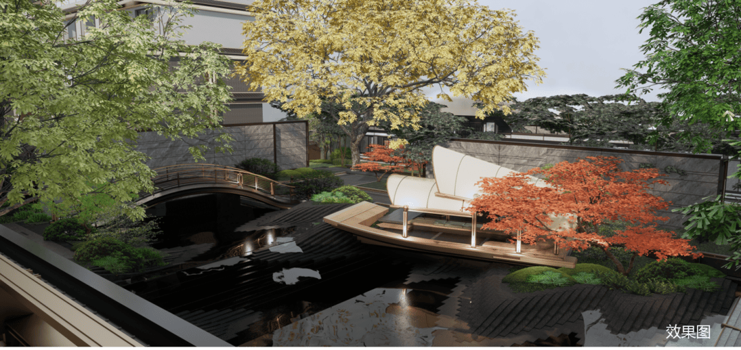 归家动线上,第四景-烟柳画桥:正在地方青绿的水池,包罗恒温泳池、健身房、瑜伽馆等有氧空间,以诚意做品敬著,一席时代迭新之做-【保利建发·印象青城】