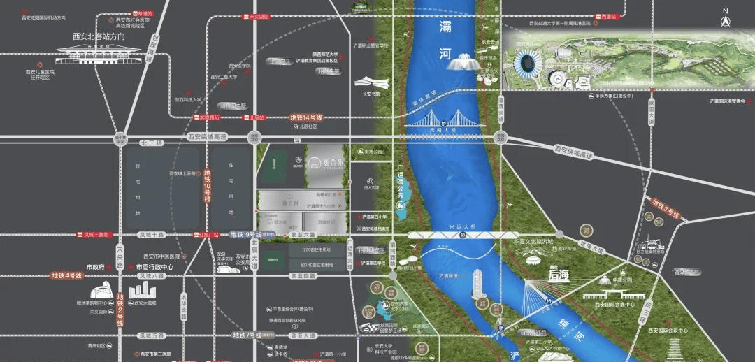 5公里内聚合了华夏文旅、西安奥体核心、长安云、长安泰、长安书院、西安国际会展核心、丝国际文化艺术核心、保利大剧院八大文旅地标。熙地港、浐灞印象城、王府井国际港购物核心(扶植中)、华润万象城(扶植中)等贸易资本领航,