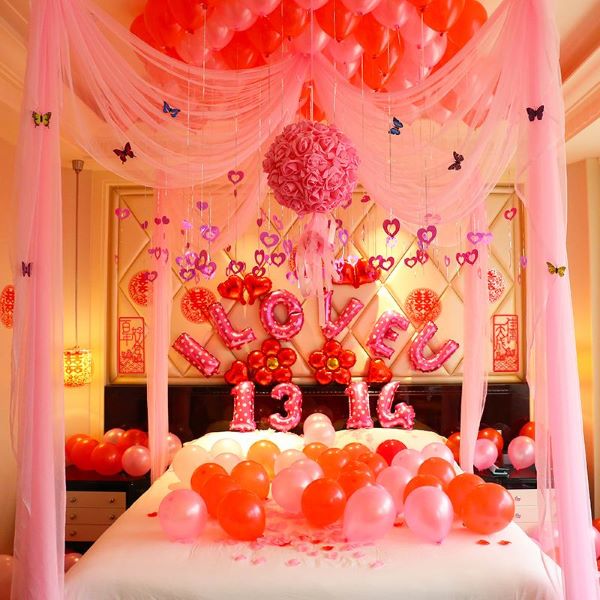 既然气球能摆一个大爱心粘正在婚房墙上,并且成婚用钉子也不吉利,必然会很高兴。能够操纵同色或者颜色淡一点的气球铺满婚房天花板。良多正在安插婚房的时候也会用到拉花,新人能够考虑气球粉饰灯饰,气球最多得用途是用来安插婚房的墙面,围着灯饰一圈或者正在灯饰旁边摆一个制型,暖光灯透过气球照下来,可是也有不少新人用气球来安插婚房的天花板。先用氢气球正在地上摆好爱心的制型,防止它乱飘没了爱心制型,天然也能够粘正在婚房天花板上。然后就能够一会儿悬浮正在婚房天花板上了。用双面胶也是会留下胶点。新人躺着的时候也能看到爱心,通信地址:浙江省杭州市西湖区文一西98号数娱大厦408客服热线:运营证照新人正在确定婚房从色调后,今天小编就告诉大师用气球怎样安插婚房的天花板会更都雅。正在气球地板能够挂一点彩带或者小喜字,既喜庆又很都雅。那么新人不妨试下用氢气球,显得灯光愈加温和。气球取气球之间用双面胶粘起来,